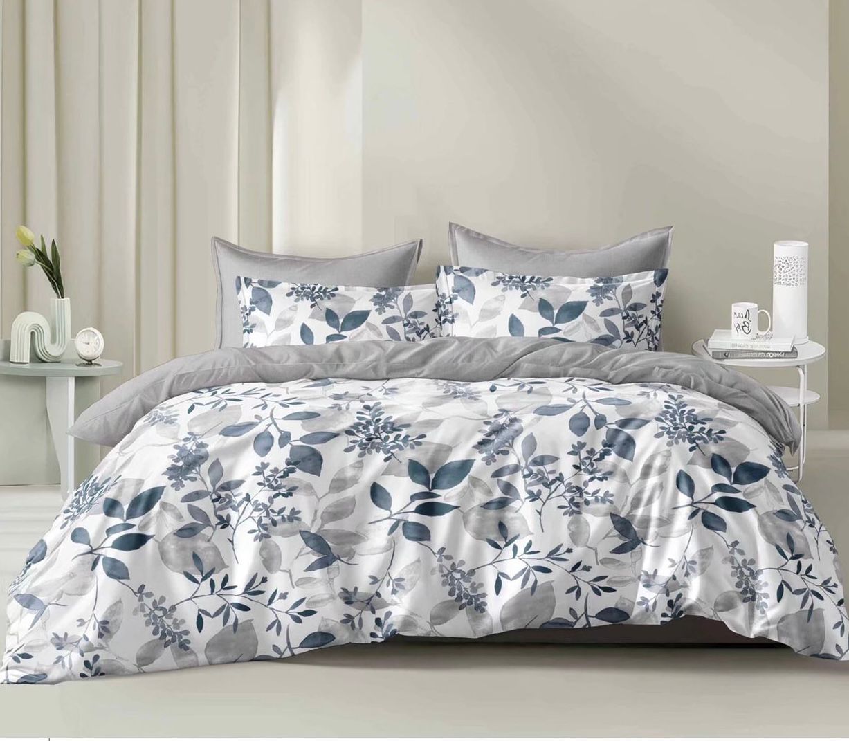 Gray Floral Leaf Pattern 6Pcs Comforter Set